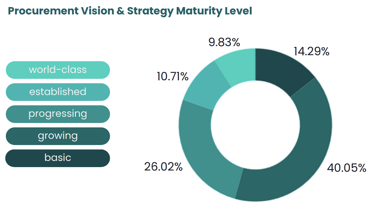 Over half (54%) of surveyed organisations remain at the “Basic” or “Growing” stage, with fewer than 5% having a fully developed and well-communicated procurement strategy.